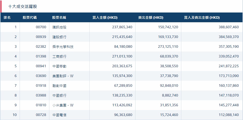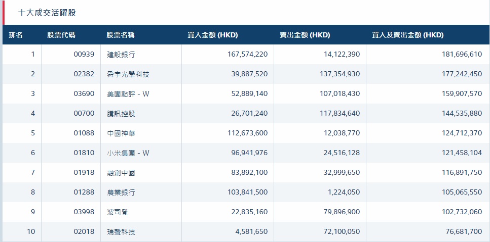 此外,中国神华(01088)、美团点评-W(03690)分别获净买入1亿、4410万港元。