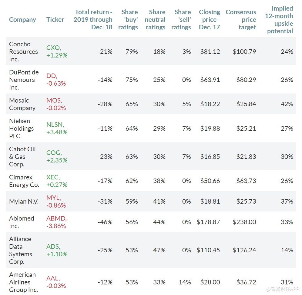 Mark Hulbert表示,当考虑标普500指数在今年截至12月18日的回报率已达到30%时,这些股票的表现的确比较糟糕,但这并不会阻止这些股票在未来带来正收益。他还指出,在FactSet调查的华尔街卖方分析师中,这10只股票具有多数“买入”或同等评级。