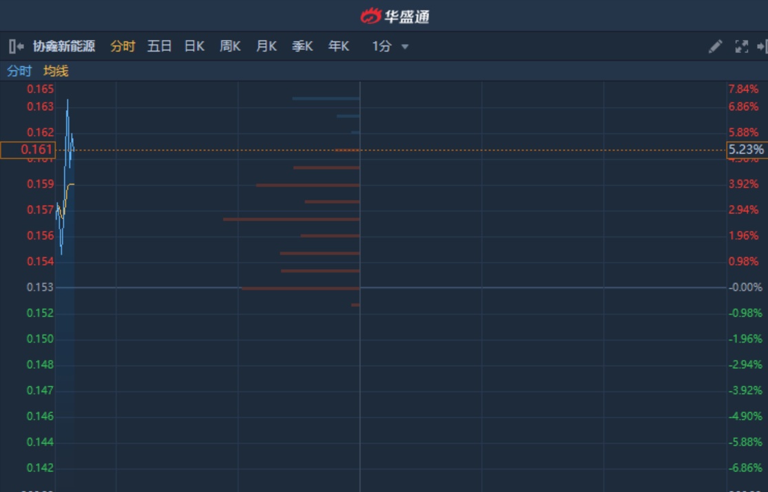 智通财经APP获悉,协鑫新能源(00451)早盘股价高开高走,一度升逾7%。截至9时38分,涨5.23%,报价0.161港元,成交额460.46万。