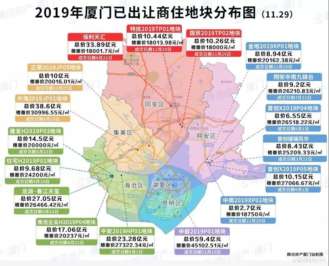 11月29日,正荣以底价竞得厦门集美2019JP05地块,成交价10亿元,成交楼面价20016元/平方米。该地块位于集美区大学城文菊路与博文路交叉口南侧,占地面积18214.658平方米,计价建筑面积49960平方米。这是正荣地产首次进入厦门。