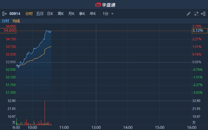 智通财经APP获悉,根据联交所最新资料显示,12月16日,摩根大通增持海螺水泥(00914)110.45万股,每股作价53.3037港元,总金额约为5887.39万港元。受消息影响,海螺水泥涨3.02%,报54.55港元,成交额8728.9万港元。