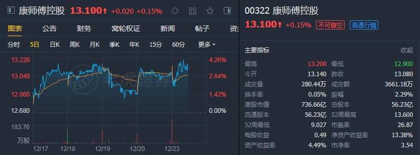 花旗指出,该笔交易估值相当于2018年市盈率的35倍,而康师傅去年的市盈率为25.4倍。由于市场竞争,产品缺乏创新以及在市场上缺乏主导地位,康师傅饮料业务在结构上较薄弱。另外,相关报告表示,该笔交易估值略高于前次交易,利好饮料业务盈利能力提升,有助于改善饮料业务利润率,预计持股比例的增加将提升康师傅饮品净利润6%-7%,对整体盈利贡献为1.4%左右。