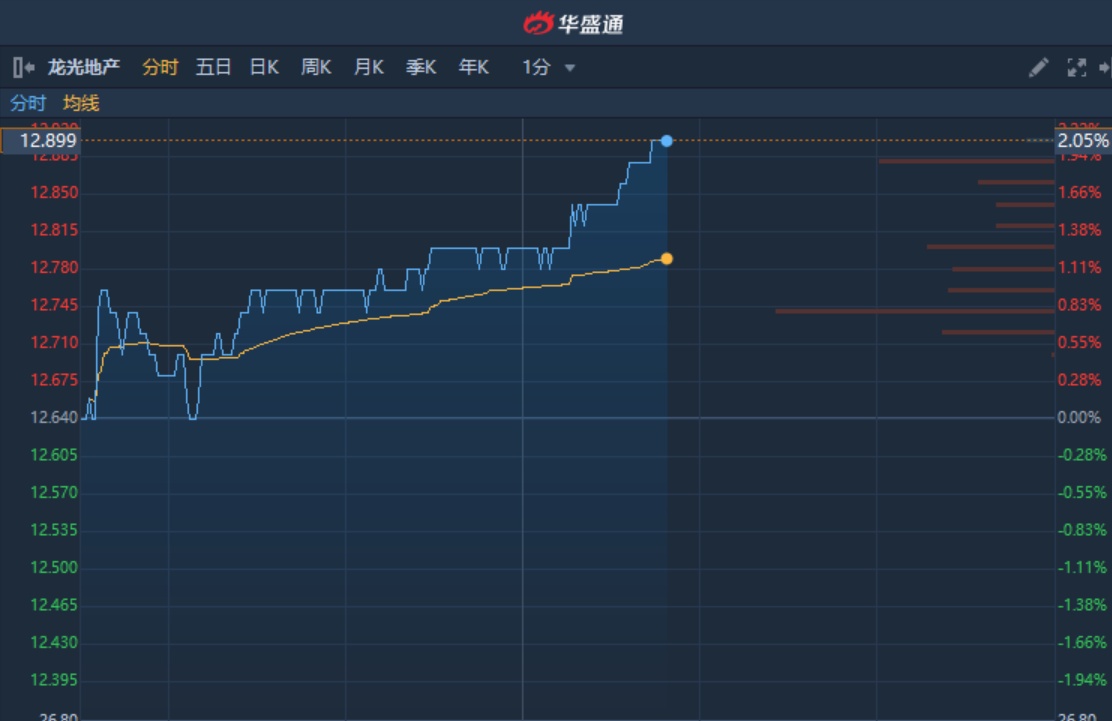 智通财经APP获悉,龙光地产(03380)盘中升逾2%,一度高见12.9港元,创近八个月新高。截至13时48分,涨2.06%,报价12.9港元,成交额4161万。值得一提的是,世茂房地产(00813)盘中曾高见30.75港元,创历史新高。