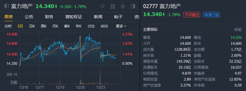智通财经APP获悉,花旗发表研报称,富力(02777)此次配售股份相当于扩大后股本约7.8%,相对股东会批准的20%,规模比预期小,相信配股后短期股价威胁已消除,考虑到富力流动性压力减少,以及明年销售情况或受旧改项目带动而有所改善,相信富力短期内将获重估。