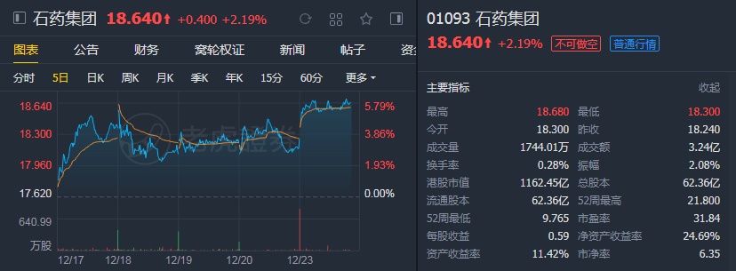 智通财经APP获悉,国泰君安发表报告表示,首予石药集团(01093)“增持”评级,目标价27.28港元,相当2020年预测市盈率31倍。石药集团作为国内领先的综合型制药企业,业务范围覆盖创新药、仿制药、原料药,在抗肿瘤、精神神经、心脑血管、抗感染、消化代谢等几大领域均有广泛的产品布局,现有创新产品支撑业绩稳步增长,多个在研重磅新药有望逐渐贡献业绩增量。预测2019至2021年公司归母净利润分别为44.46亿、54.89亿、68.01亿港元。