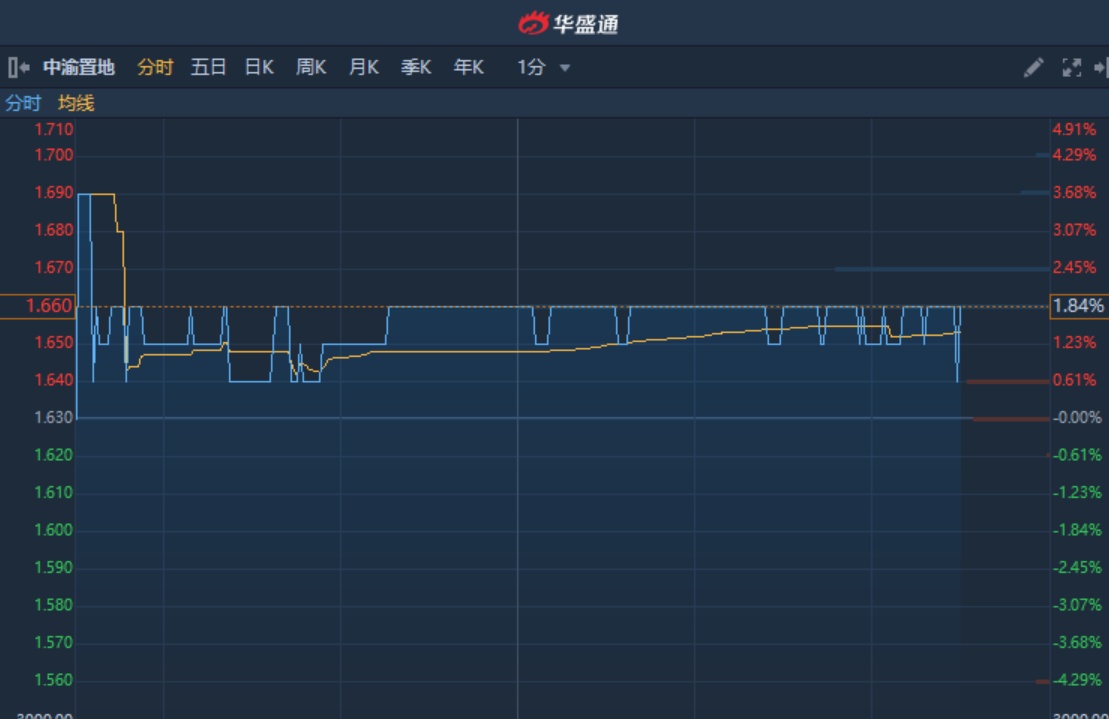 港股异动︱尾盘现一宗大手成交涉资4920万 中渝置地(01224)现涨1.84%