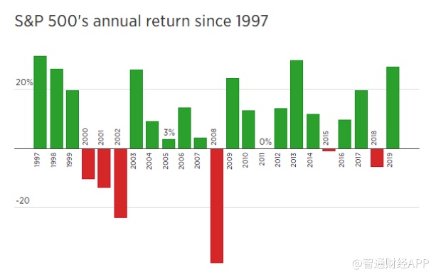 智通财经APP获悉,距离2019年结束还有不到两周的时间,标普500指数上涨了28.5%,较2013年29.6%的涨幅低了约1个百分点。如果超过这个涨幅,那将是22年来表现最好的一年,1997年标普500指数上涨31%。