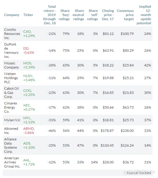但值得注意的是,据Faceset统计,在这23只股票中,有10只个股却被华尔街卖方分析师给予了“买入”或与之相当的评级。