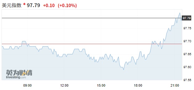 截至北京时间21:47,美元指数报97.79,涨0.1%;
