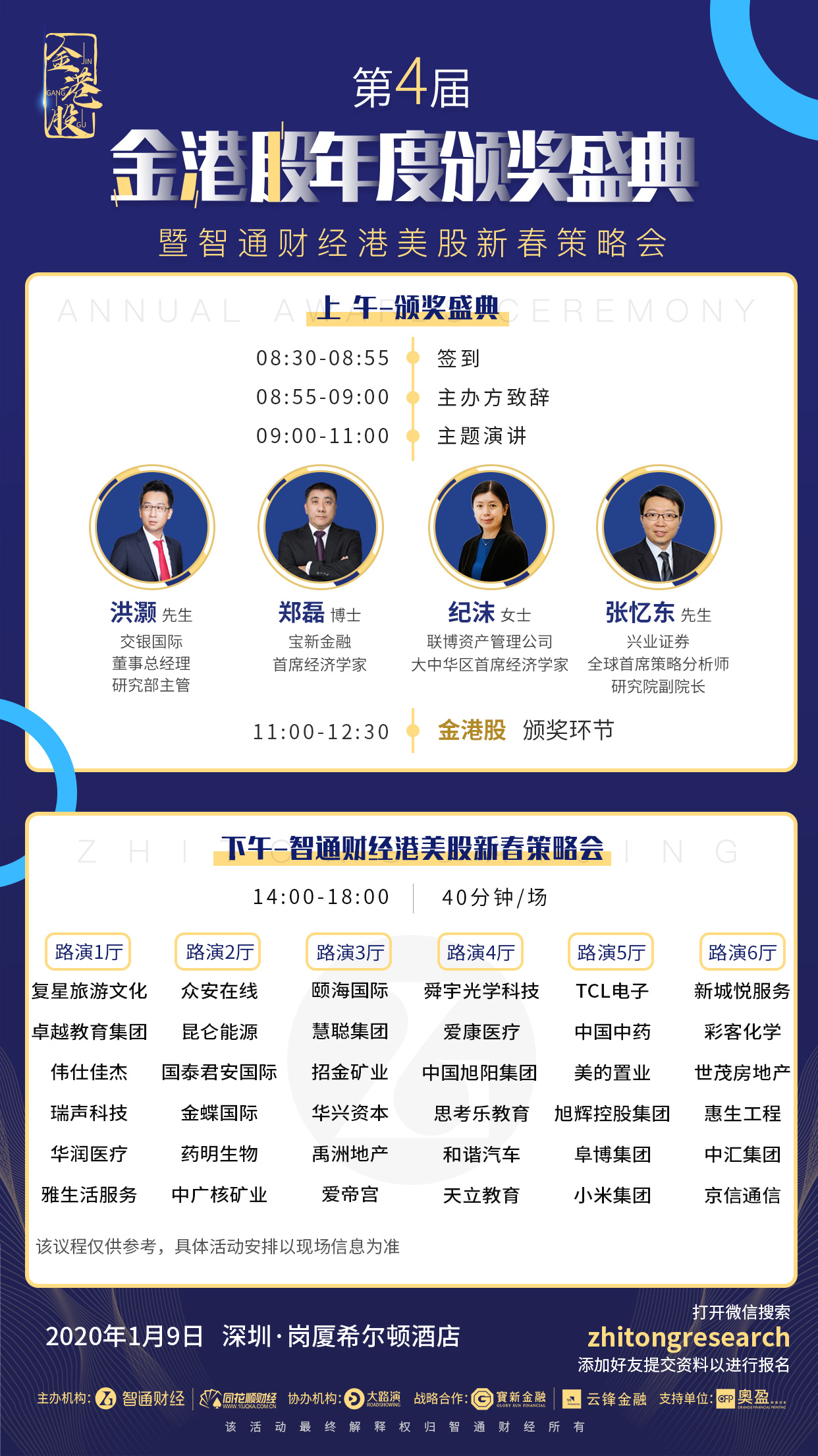 “第四届金港股年度颁奖盛典暨智通财经港美股新春策略会”2020年1月9日在深圳启幕。该活动是由国内领先的港美股资讯平台智通财经与同花顺财经共同主办,大路演协办,宝新金融、云锋金融战略合作、奥盈全程支持。