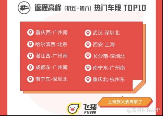 返乡高峰(腊月二十八-大年三十)热门车段TOP10