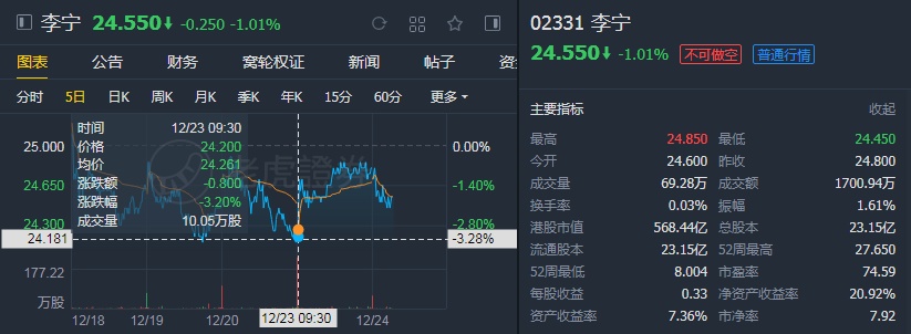 瑞银行相信“中国李宁”的直接收入贡献将会在2021年前限制在11%至13%,并相信目前的趋势不可持续,因为供应链及销售渠道尚未进行任何重组。在公司的广告及宣传成本比率已达到低水平的情况下,毛利率仍存在有限的上行空间。瑞银将公司的目标价由原来的22.15港元上调至26.5港元,维持“中性”投资评级。