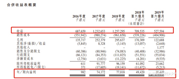 据招股书显示,自2016年到2018年,该公司实现收益分别为6.877亿港元、12.327亿港元及12.573亿港元,分别同比增长44.21%和1.96%;年╱期内溢利分别为1.0百万港元、74.2百万港元、77.0百万港元,分别同比增长98.65%和3.64%。
