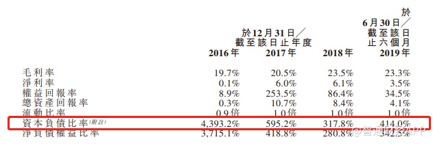 除此之外,招股书显示,该公司于2016年、2017年及2018年12月31日以及2019年6月30日分别录得约4,393.2%、595.2%、317.8%及414.0%的高资本负债比率。