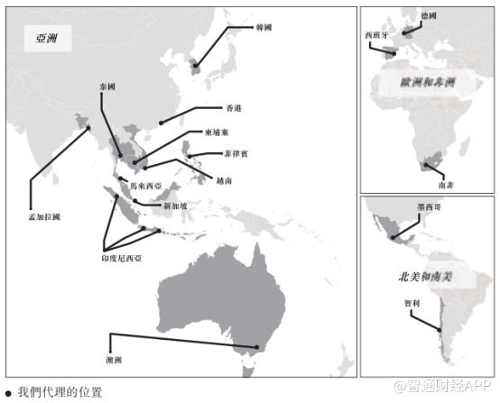 目前,公司主要通过再马来西亚主要通道设立一线办事处,并在亚洲建立代理网络发展业务。海外代理网络主要覆盖东南亚主要国家、以及部分欧美国家。