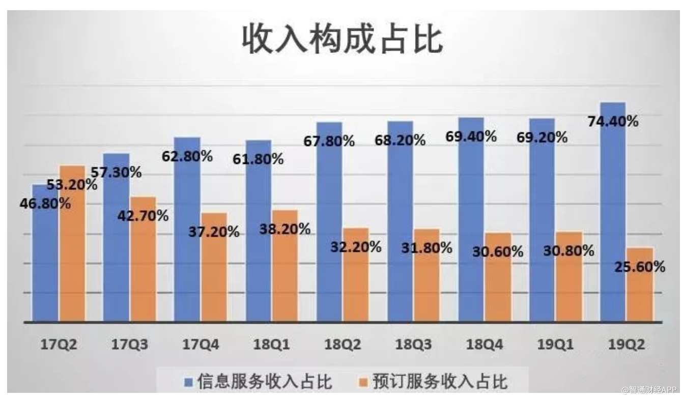 早先新氧的主要收入是以预定服务为主的,但是从2017年开始,新氧的收入结构正从预定服务为主转为以信息服务为主,到现在新氧的信息服务占比已经从早期的46.8%变成了74.4%。