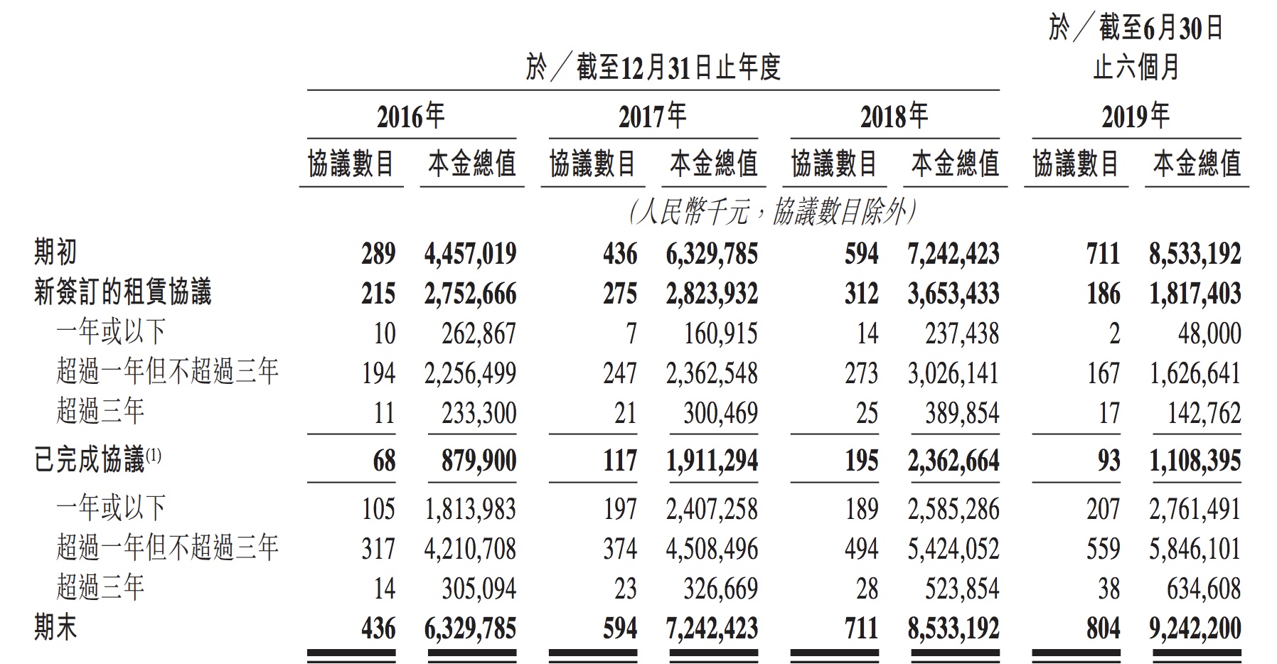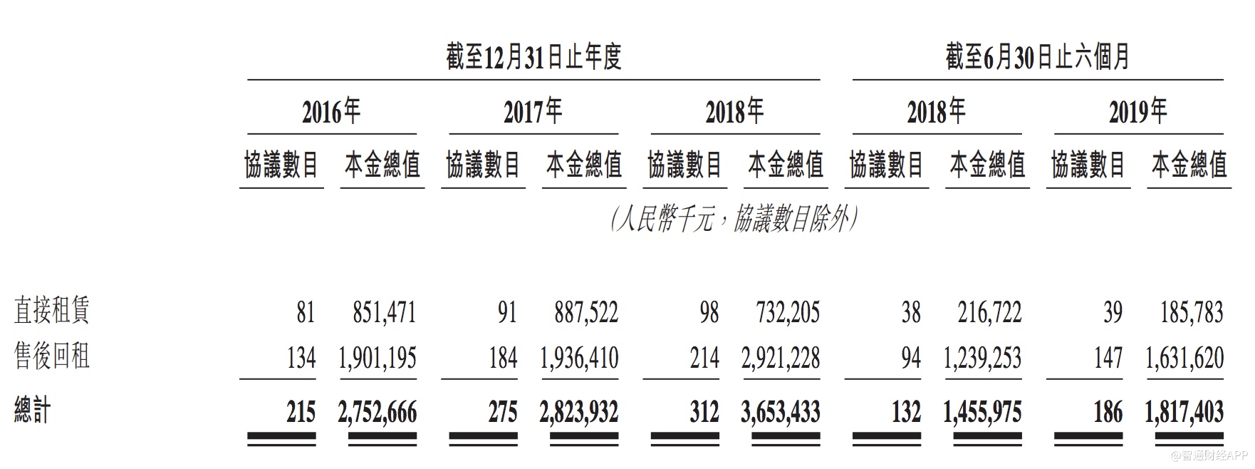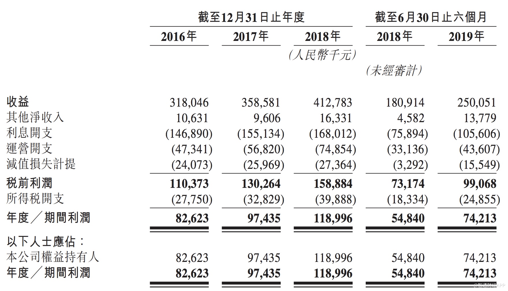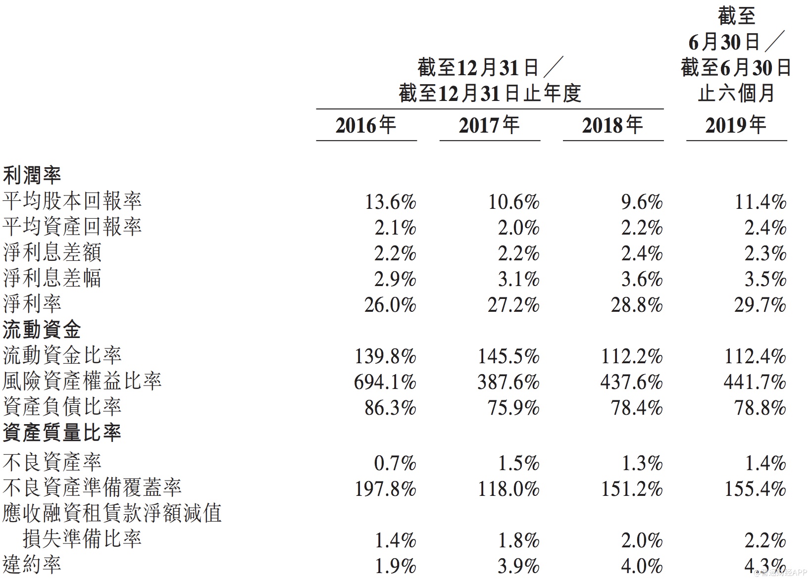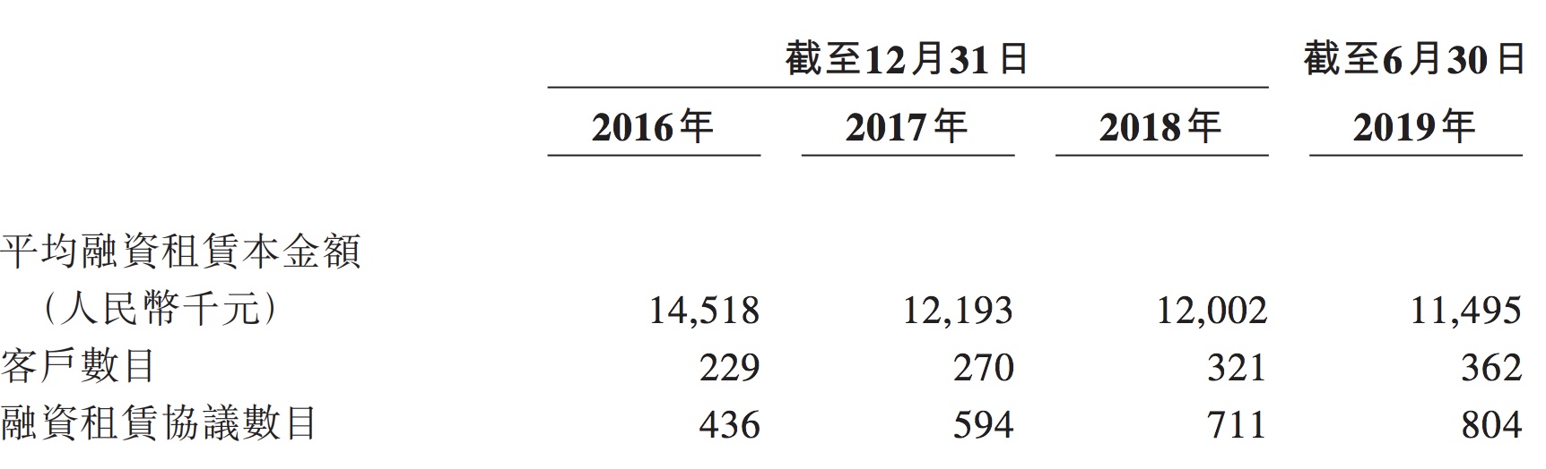 2016至2019年上半年公司收益整体增加主要由于所服务的承租人数目及订立的租赁协议的数目和价值增加所致。净利润整体增加乃主要由收益增加所带动。有关增加也导致公司的应收融资租赁款结馀增加,继而令若干财务比率出现波动。