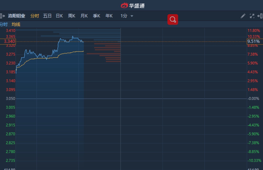 智通财经APP获悉,洛阳钼业(03993)涨幅持续扩大,盘中一度高见3.37港元,创八个月新高。截至11时08分,涨9.51%,报价3.34港元,成交额1.526亿。