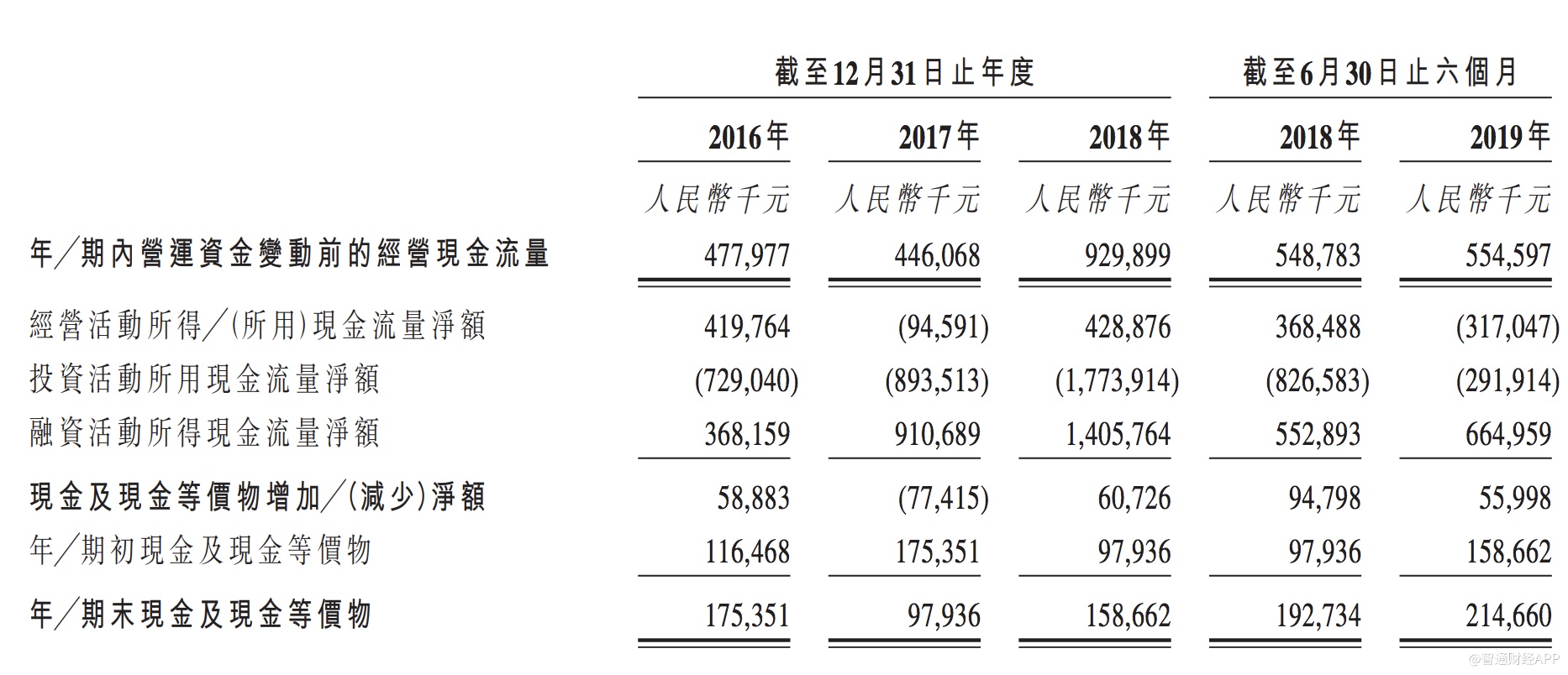 截至2019年6月30日止六个月,公司于经营活动所用现金净额为人民币317.0百万元, 主要来自预付款项、其他应收款项及其他资产增加人民币516.3百万元及持作出售已竣工物业增加人民币436.9百万元,部分被在建物业减少人民币359.9百万元及合约负债增加人民币255.1百万元所抵销。 截至2017年12月31日止年度,经营活动所用现金净额为人民币94.6百万元,主要由于持作出售已竣工物业增加人民币471.6百万元、预付款项、其他应收款项及其他资产增加人民币533.4百万元,以及其他应付款项、已收按金及应计费用减少人民币114.7百万元以及已付利息人民币152.0百万元所致,部分被在建物业减少人民币128.4百万元、贸易应付账款增加人民币159.6百万元以及合约负债增加人民币562.6百万元所抵销。