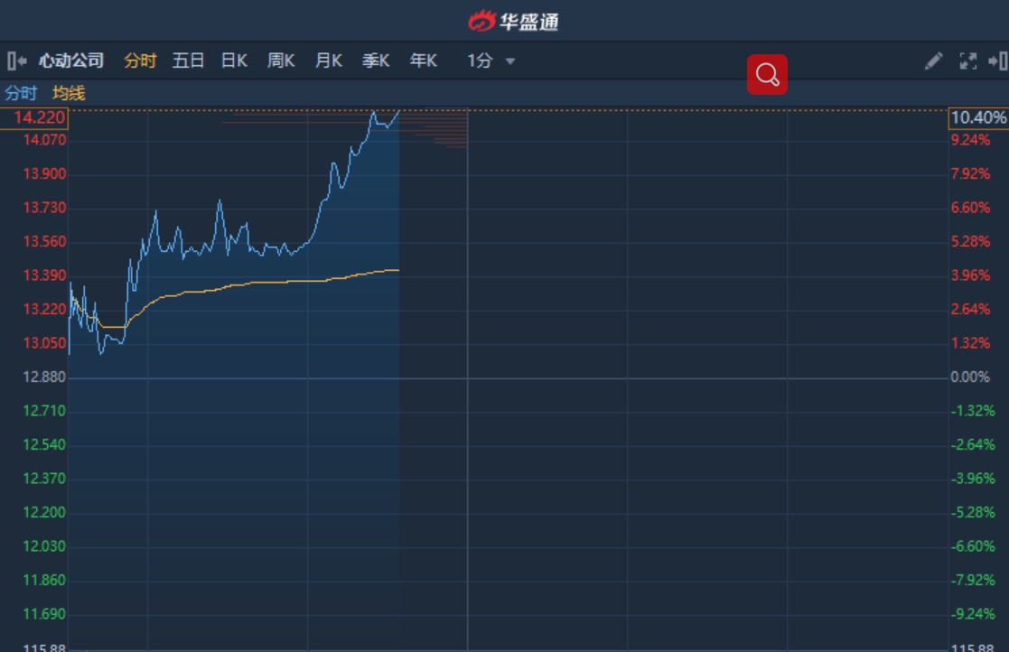 智通财经APP获悉,次新股心动公司(02400)获资金追捧,盘中股价大幅攀升,截至11时33分,涨10.4%,报价14.22港元,成交额2.298亿。