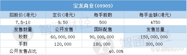 智通财经APP获悉,12月27日,宝龙商业(09909)配售结束。配售招股价7.5-10港元,最终定价9.5港元,每手4750港元。