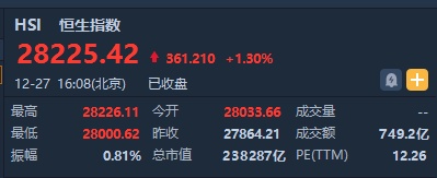 恒指本周累涨1.27%,最高点28226.11点,最低点27792.66点。
