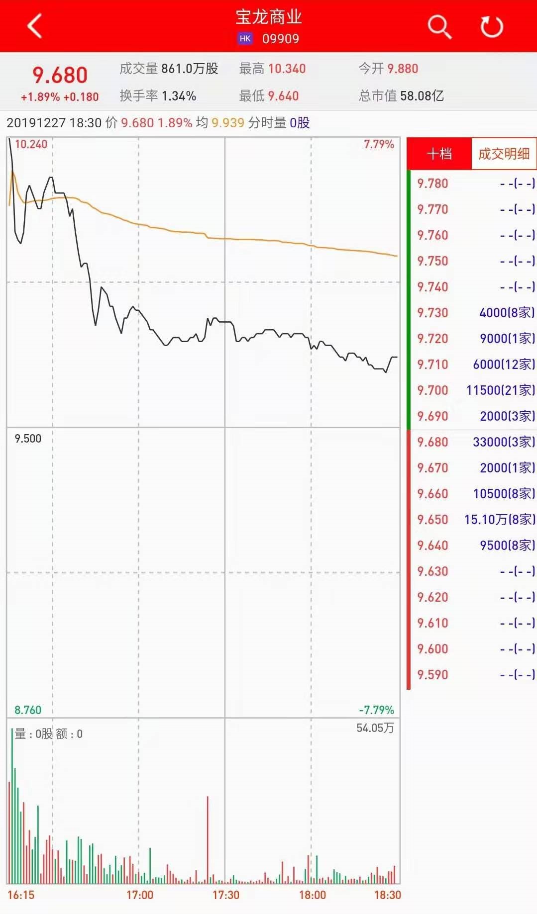 智通财经APP获悉,宝龙商业(09909)将于下周一(12月30日)挂牌。截至收盘,利弗莫尔证券暗盘交易显示其报价9.68港元,较招股价9.50港元涨1.89%。每手500股,不计手续费,每手赚90港元。