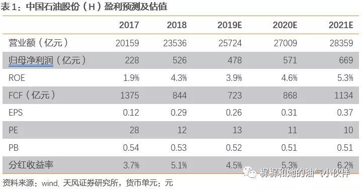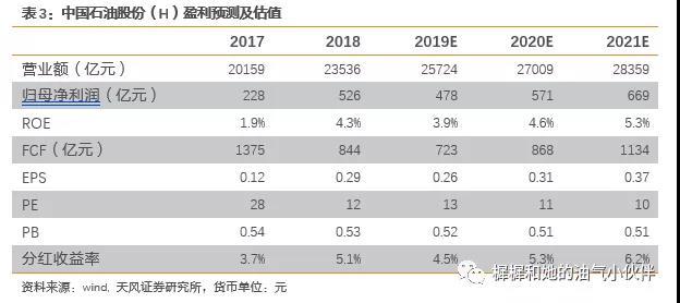 6)期间费用率、所得税率:在国企改革背景下,有下降的可能性。但具体仍需观察公司是否有相关行动,因此业绩预测中尚未予以考虑。盈利预测:维持公司2019年业绩预测478亿,考虑到上游持续降本,以及天然气板块实现价格上涨,上调2020/2021年业绩预测571/669亿(原为508/515亿)。19/20/21年EPS0.26/0.31/0.37元。