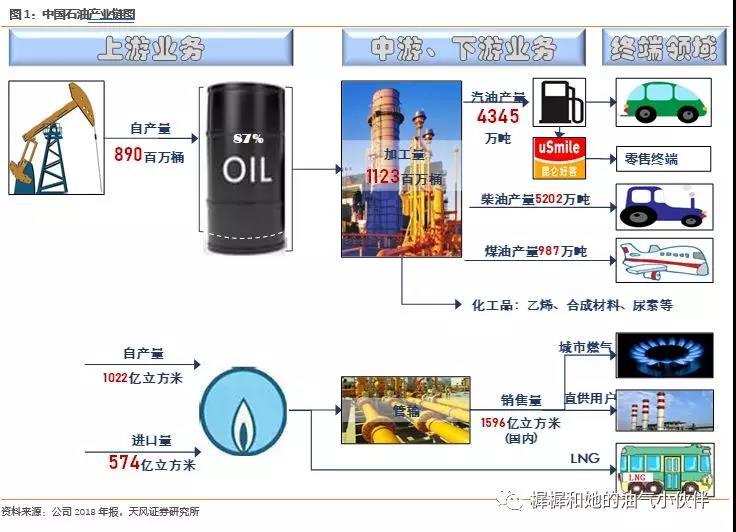 产业链结构来看,中国石油是一体化公司。原油产量、原油加工量、成品油销售量比例大致是4:5:6的关系。