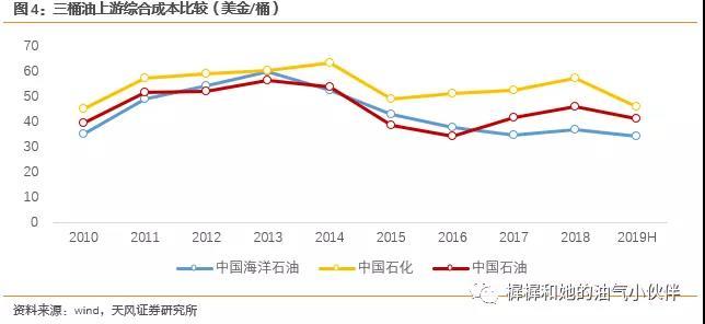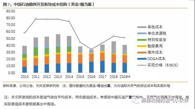 公司强调“效益增储、效益建产”,新上表储量有望拉动公司单位DDA成本和整体桶油成本下降。2019年上半年,公司上游板块折旧摊销折耗771亿,同比-89亿;油气综合成本约41美金/桶当量,同比下降约7美金/桶当量。