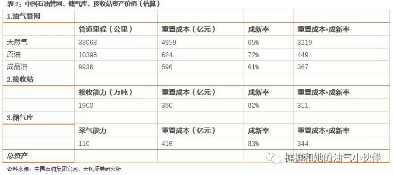 根据公司公示的油气管网、LNG接收站、储气库情况,按照重置成本*成新率方法,我们估算资产总值约4700亿元。
