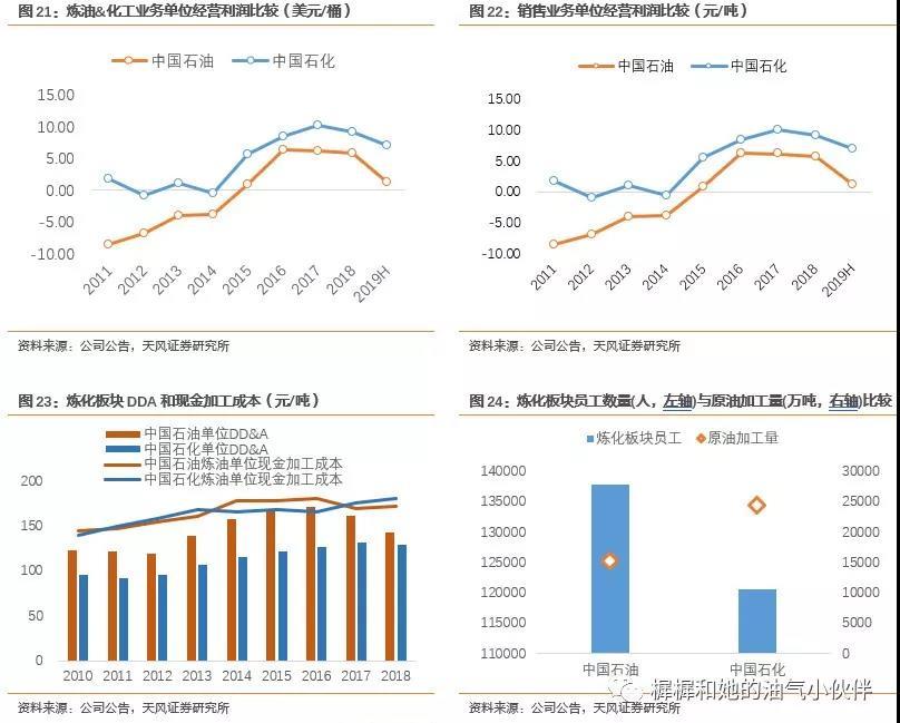 中国石油炼油业务历史平均盈利水平比中国石化低3.2美金/桶,化工业务比中国石化低1.7美金/桶。销售板块吨油经营利润比中国石化低130元/吨。