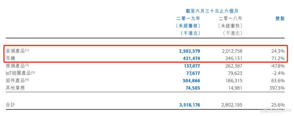 2019年上半年,受益于音频产品、耳机以及部件产品业务快速增长,通力电子实现营收35亿港元(单位下同),同比增长25.6%;毛利达4.6亿元,同比增长33.7%;净利润达0.98亿元,同比增长18.5%。