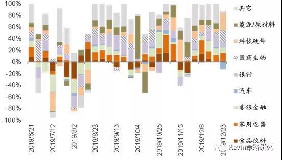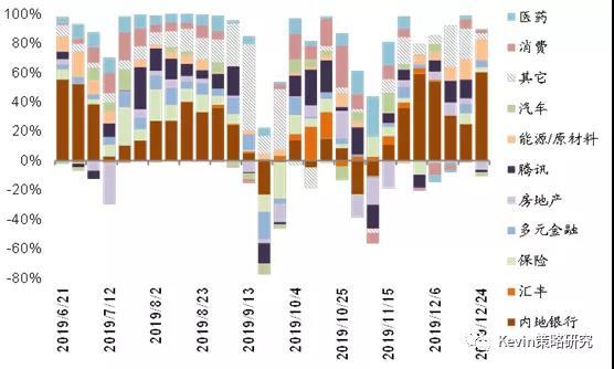 海外资金:本周(12月19日-12月25日)共计11.2亿美元的海外资金流入海外中资股市场(包括H股和美国中概股),为连续第9周流入,规模较上周的6.94亿美元明显增加,其中有67%的流入来自于专注投资海外中资股的海外基金。