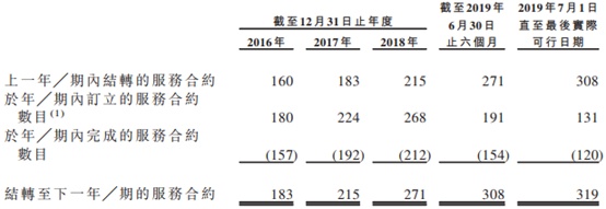 公司所订立服务合约的数目由截至2019年6月30日止六个月的191个减少至2019年7月1日直至最后实际可行日期期间的131个,主要归因于与客户订立服务合约时经历的周期续新模式。自最后实际可行日期起至接下来的六个月内,公司预期将有七个服务合约须续新,合共合约金额约1610万新元。