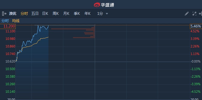智通财经APP获悉,澳优(01717)获天风证券看高至20.3港元,评级“买入”,该股盘中延续涨势,截至10时31分,涨5.46%,报价11.2港元,成交额1977万。
