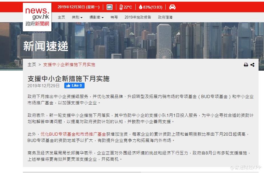 此外,优化BUD专项基金和市场推广基金获增加注资,每家企业的累计资助上限和首期拨款比率由2020年1月20日起调高,BUD专项基金的资助地域予以扩大,有助提升企业竞争力和拓展海内外市场。
