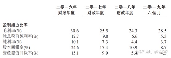 智通财经APP观察到,近三年隽思集团的利润率呈现逐年下滑的趋势。2016年至2018年,其毛利率分别为30.6%、25.5%及24.3%,税后净利率分别为10.1%、7.3%和4.4%,2019年上半年毛利率分别为28.5%及3.7%。