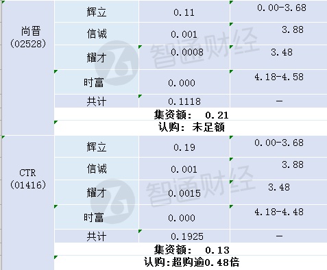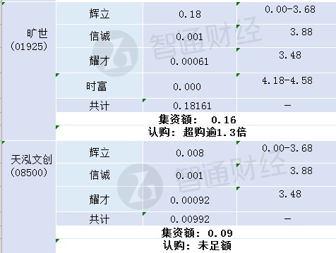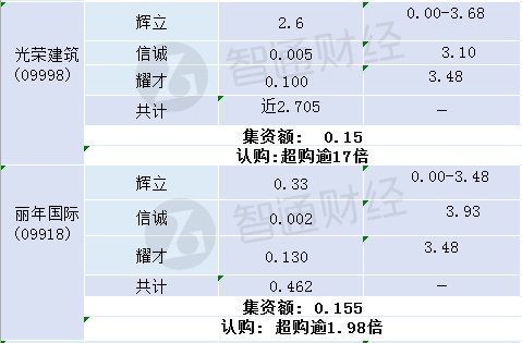 其中九毛九超购逾63倍,新石文化超购逾73倍,光荣建筑超购逾17倍,丽年国际超购逾1.98倍,CTR超购逾0.48倍,旷世超购逾1.3倍。其余四家未足额。