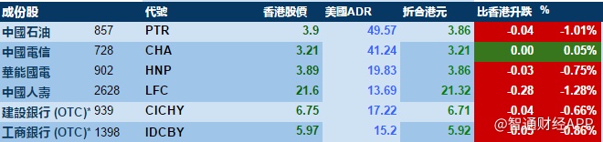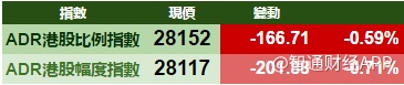 智通财经APP获悉,周一美股获利回吐,港股ADR指数全日偏软,按比例计算,收报28152点,跌167点或0.59%。