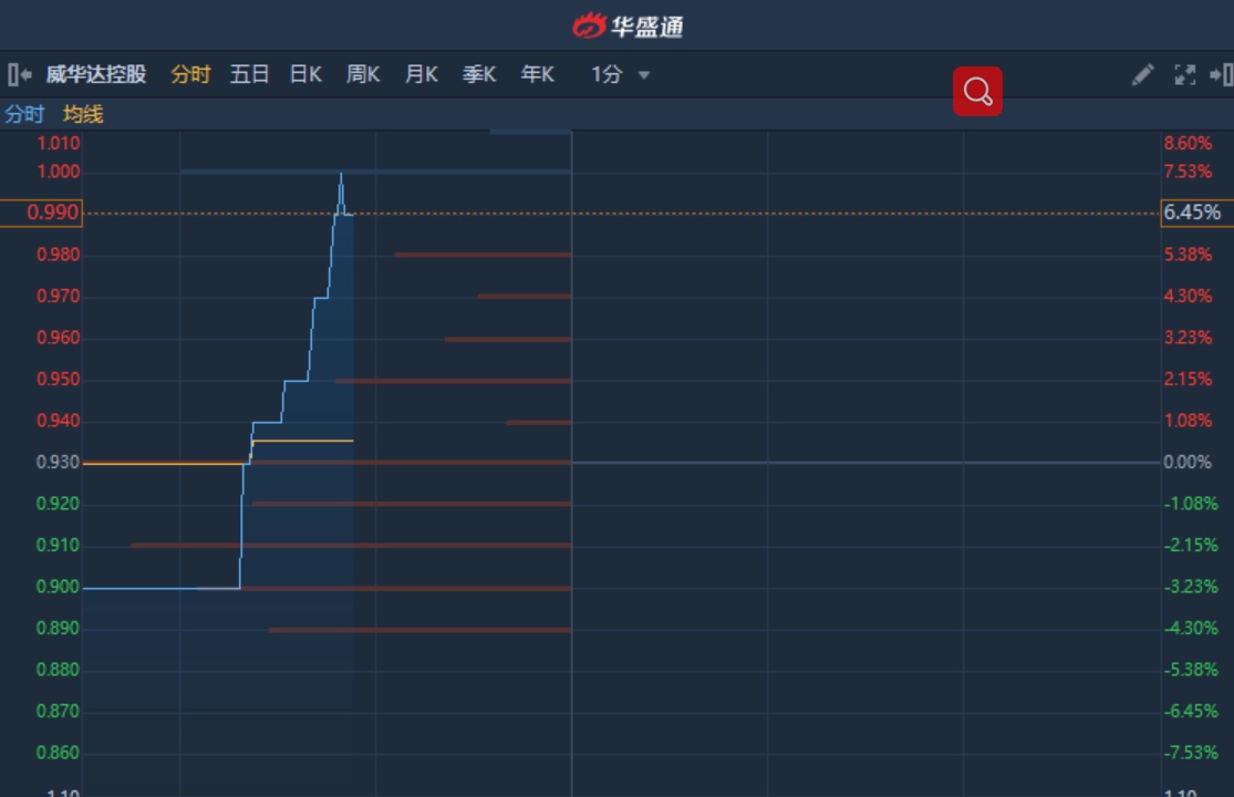 港股异动︱盘中现三宗大手成交涉及2亿股涉资1.9亿港元 威华达控股(00622)现涨6.45%