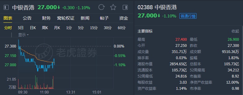 该行称,将中银香港今后三年净收益下调4.5%、12.2%和18.2%,每股盈利分别为3港元、3.028港元、3.102港元,分别同比下降0.9%、上升0.9%和2.4%。