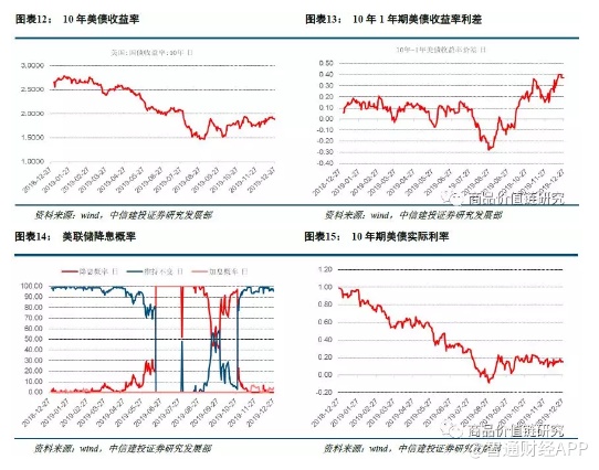 站在当下再看这两条主线,对黄金而言也难以利空出尽。美联储虽整体偏鸽派,但短期内在降息几无可能,市场也预期1月美联储降息概率为0,加息概率为4.4%。而中美经贸磋商的一波三折到达成第一阶段文本一致,也反映出阶段性双方都对合作有诉求。从美国经济近期表现来看,中长期主线美国经济走向衰退也没有迹象。通胀预期和真实利率近期也是震荡为主,美债的收益率倒挂也在美联储的操作下恢复正常。算上利好的也就是美联储在快速扩表。自8月底以来,美联储扩表近4000亿美元。