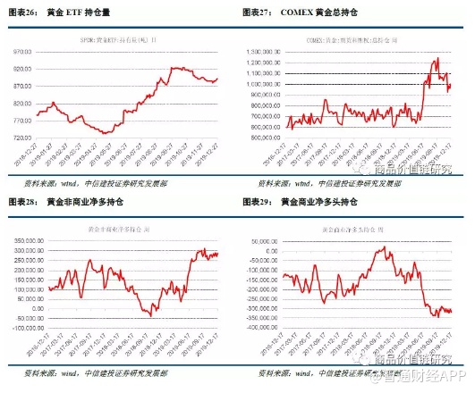 从黄金期货持仓来看,5月底金价启动时总持仓在70万手,9月高峰期超过120万手,调整后低点出现在11月底为92.6万手,最新又反弹至100万手上方。黄金ETF也从5月底不到740吨上涨至9月下旬的超过920吨,12月中旬最低降880吨,最新又反弹至893吨。