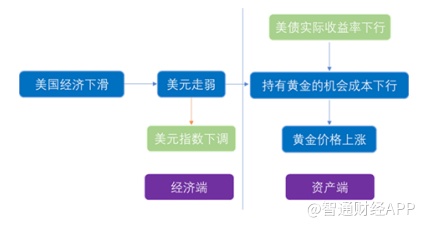 从全球和美国相互背离的经济趋势看出,美国经济(美国信用)在 2020 年将继续得到削弱,从而带动黄金价格的上涨。