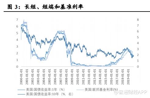 从2000年以来的长端、短端和基准利率变动趋势来看,长端利率的波动率比短端利率的波动大,我们认为主要是由于人们对经济的预期往往是不准确且有从众心理,恐慌时极度恐慌,乐观时极度乐观,而短端利率往往跟随基准利率的变动而变动,有一定的可循性。