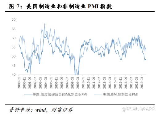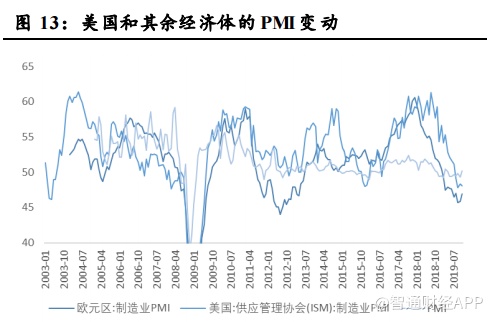 (1)从美国库存和制造业PMI变动数据来看,PMI是库存变动的领先指标,美国、中国和欧元区的PMI分别从2018年8月份、2017年9月和2017年12月见顶回落,从统计上看PMI在2000年以来的平均周期是42个月,我们认为美国短期仍将处于本轮 PMI周期的下行期。