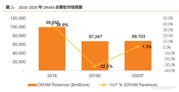Dramexchange报告显示19年DRAM市场总营收较18年大幅下降,明年预计将会有所回升。