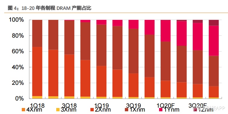 先进制程的DRAM产能占比越来越高,传统制程的产能占比在压缩,DRAM产能被拥有先进制程的龙头公司大份额占有,龙头公司的库存消化对DRAM供需情况起改善作用。