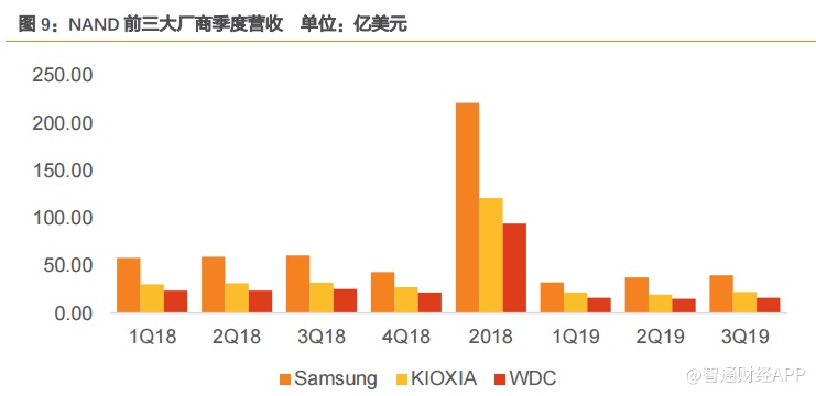 2019Q3NAND 产业整体营收环比增速达10.2%,产业高增速主要受益于年底销售旺季以及因应美中贸易冲突客户提前备货需求增加,Dramexchange预计明年全球营收较今年会有大幅增长。